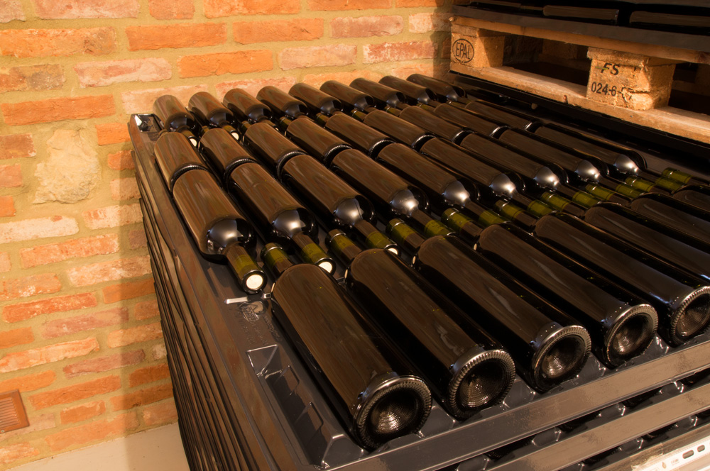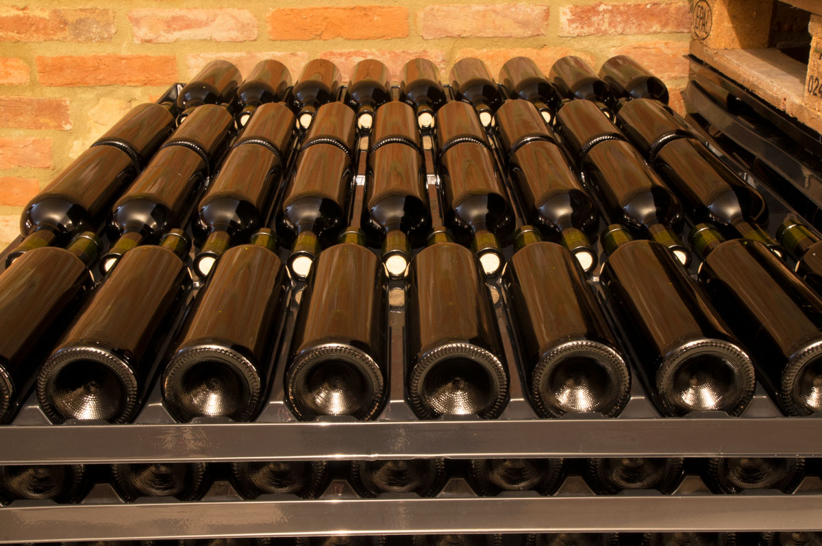 Sticlele nu se ating între ele, astfel încât sunt protejate împotriva zgârieturilor și spargerilor. De asemenea sticlele sunt protejate de lumină și rafinamentul vinului nu este compromis.